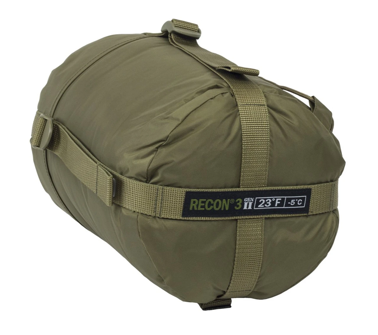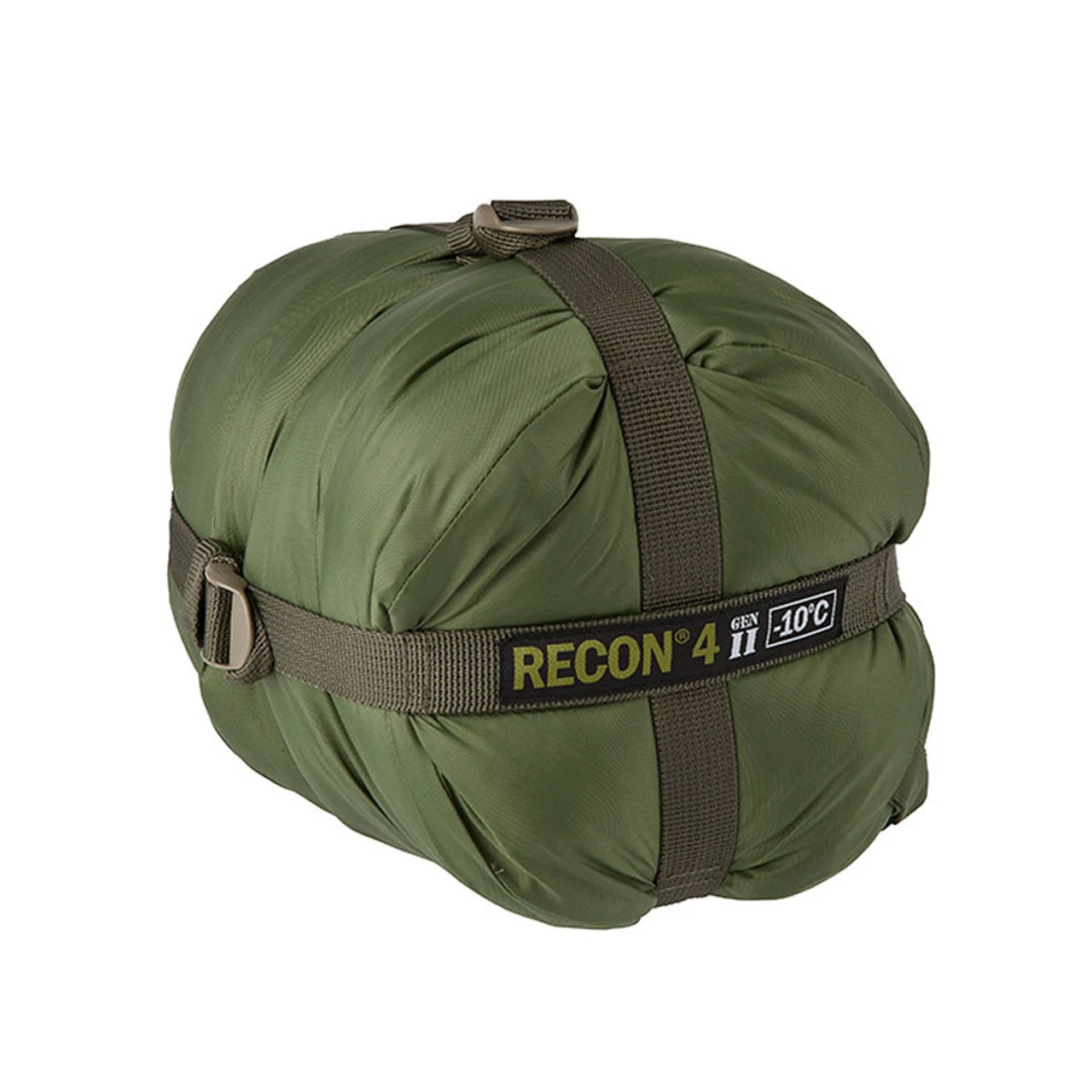 The Recon 4 sleeping bag is designed for operations in -10 degree Celsius (14F) locations.