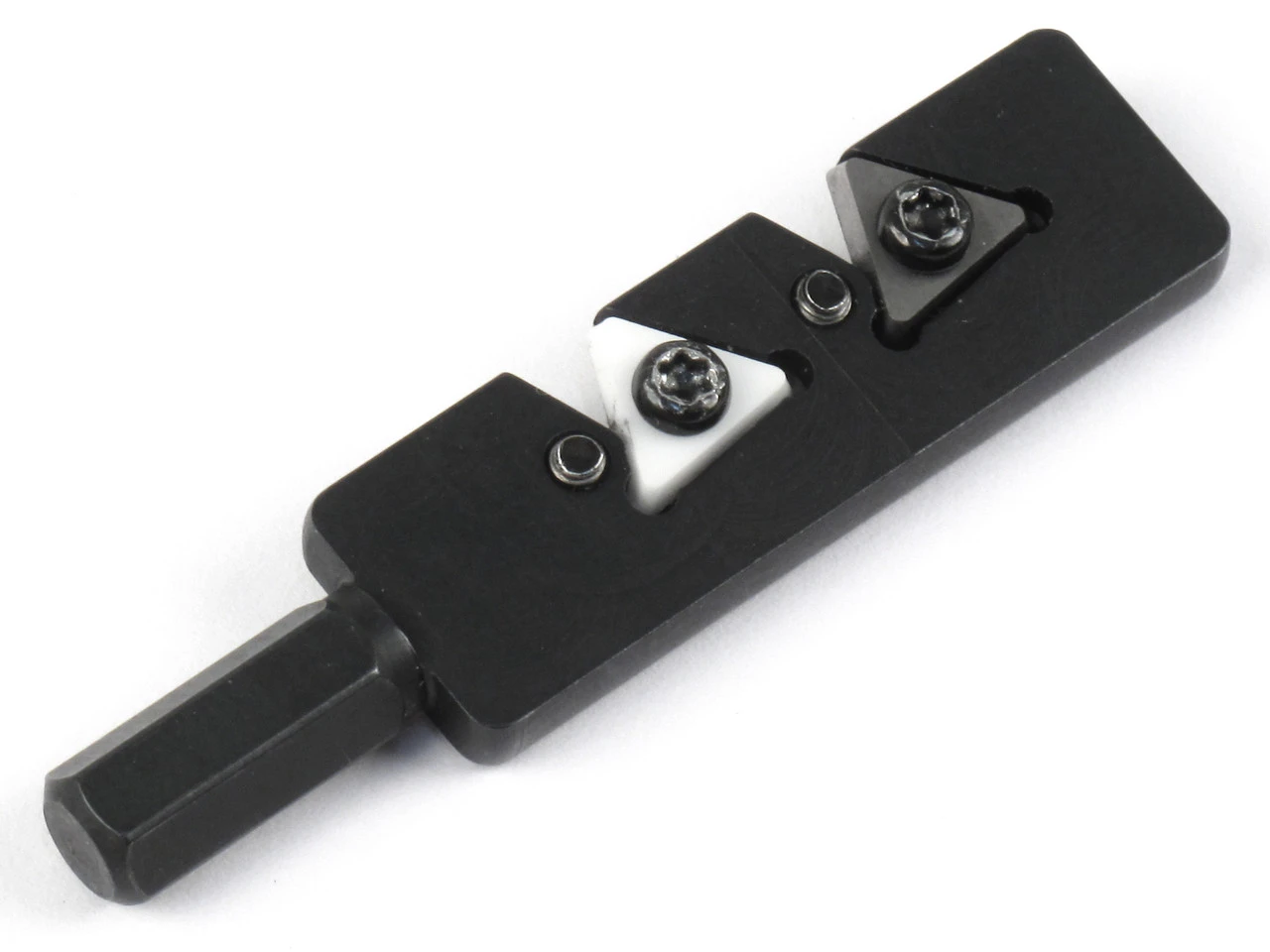 - Two Stage Knife/Broadhead Sharpener Bit has both ceramic and carbide V-Style sharpeners
