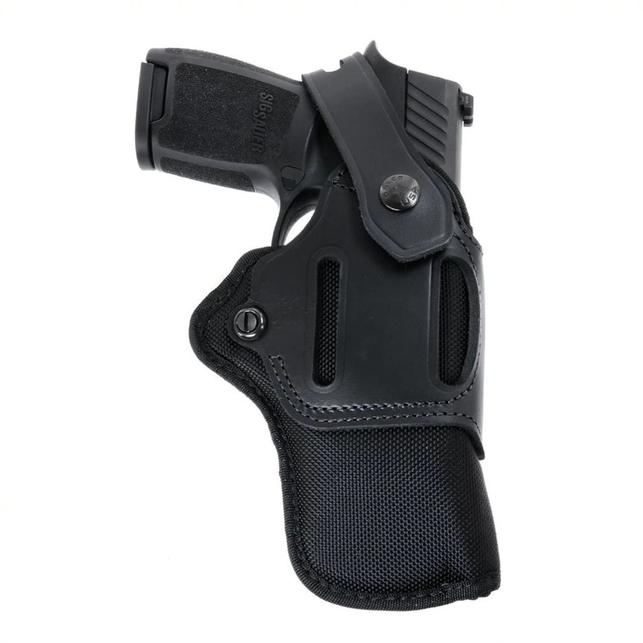 A hybrid design that combines the best elements of leather and synthetic, the GALCO Switchback Strongside/Crossdraw Belt Holster is fully ambidextrous and can be carried in the strongside or crossdraw positions.