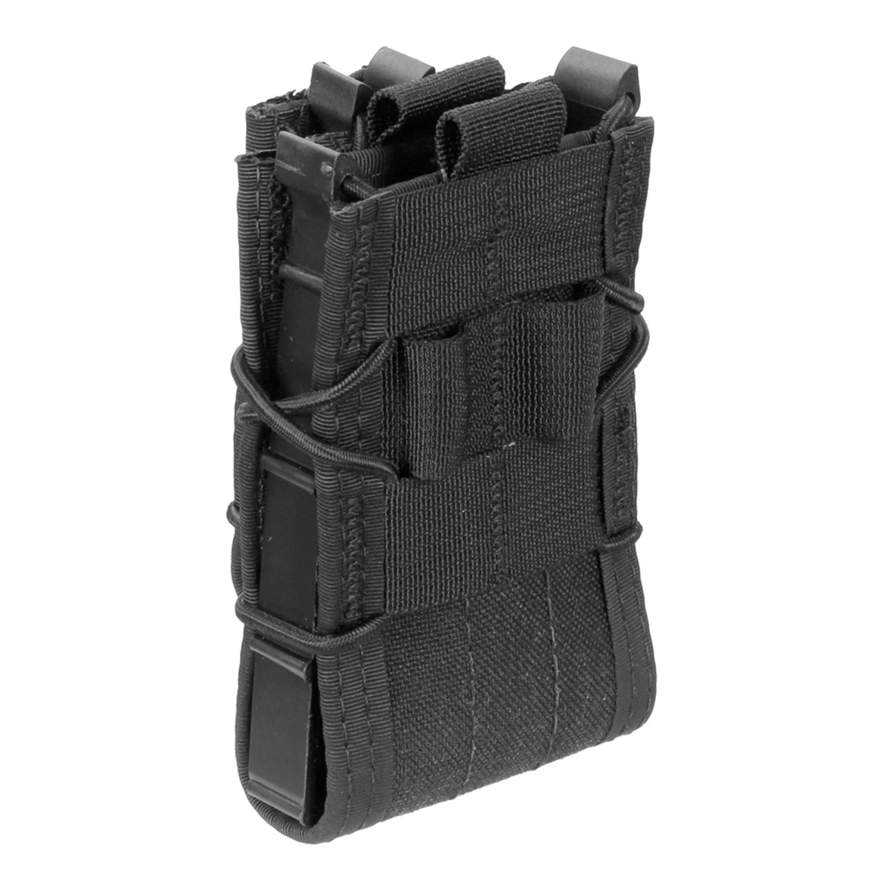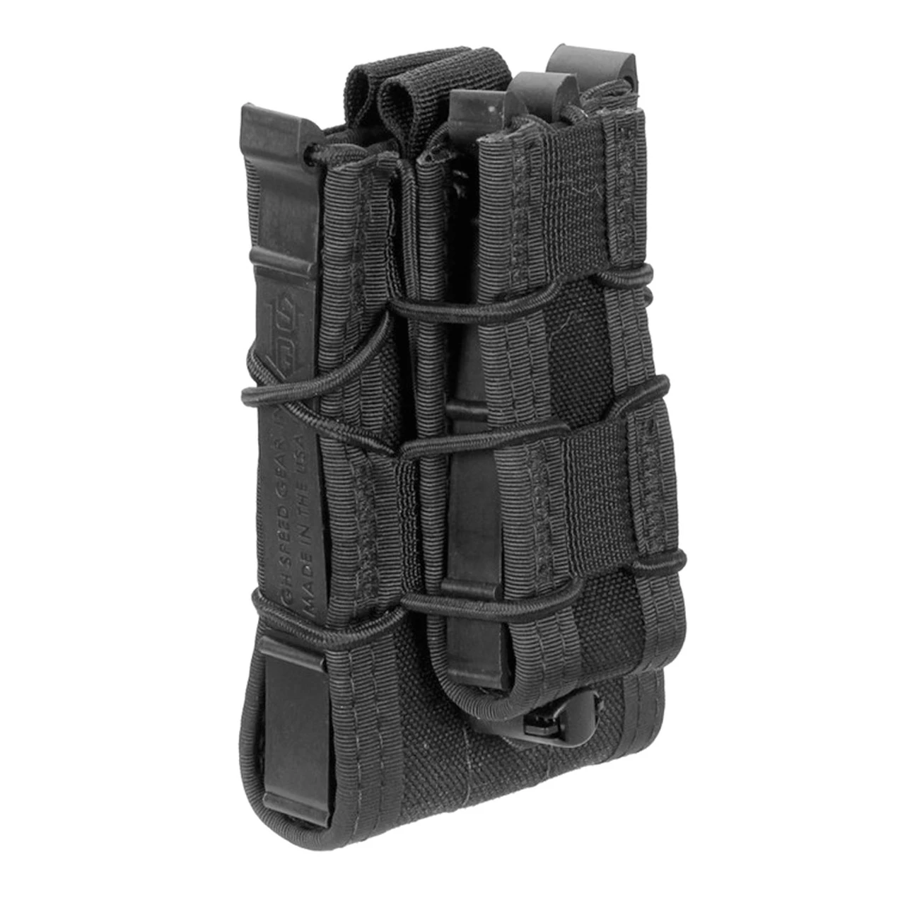 The High Speed Gear Double Decker TACO combines the TACO and Pistol TACO into one secure unit. This unique pouch can securely hold an infinite combination of mags and other accessories. Both TACO pouches are made of heavy-duty nylon, injection-molded polymer brackets and shock cord.
