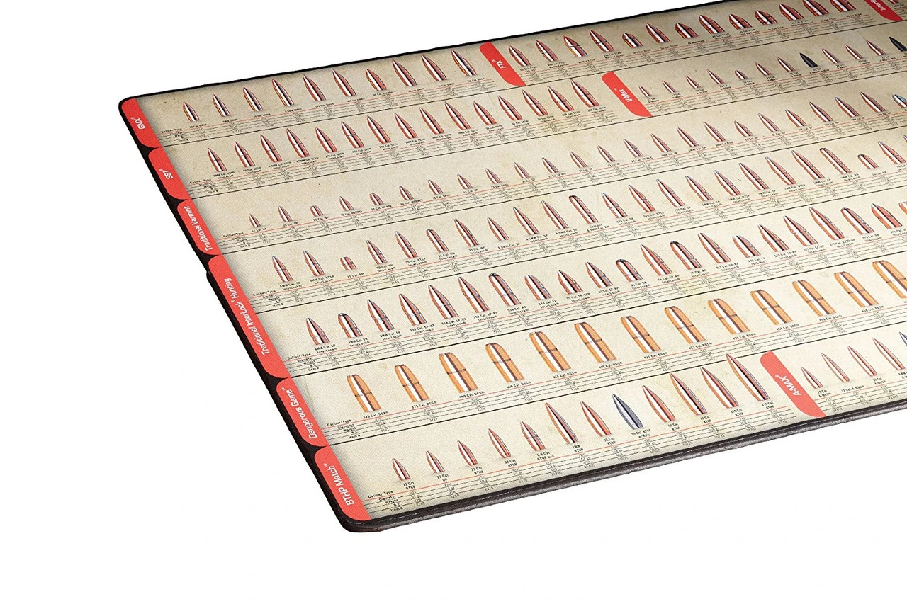 The ultimate reference tool for your reloading bench. This non-skid bullet mat features the Hornady® bullet line with corresponding caliber, diameter, weight, ballistic coefficient, sectional density, and item number.