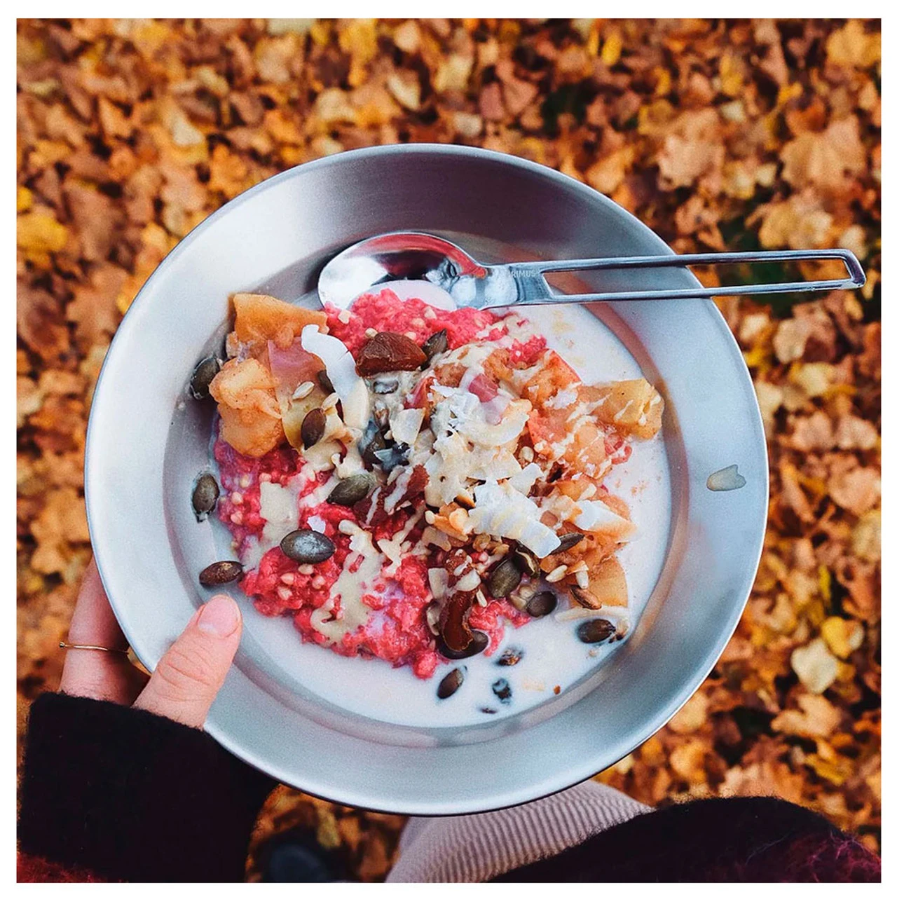 The Campfire Cutlery Set includes a knife, fork and spoon, all made with 18/8 stainless steel that cleans easily. Everything nests together to pack up compactly while a leather sleeve makes sure it all stays in place.