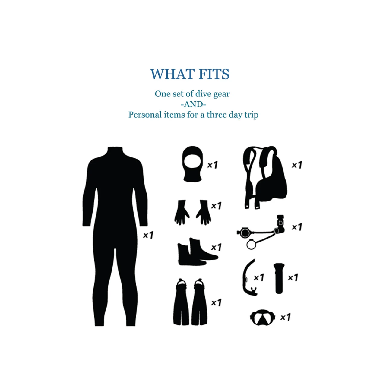 The Curacao Clipper is a fantastic, full sized dive bag that is loaded with features. The bottom compartment is fully capable of accommodating a complete dive set-up, while the top compartment will hold personal clothing, additional gear, and accessories. We have internal pockets for further gear organization. The entire bag is easily transported on our unique and dynamic frame, which is light yet very durable. All frame components are fully serviceable so in the off chance that damage does occur, it is quickly repairable. Compression Straps secure goods in transit while the comfort handle on both top and bottom of the bag allow for effortless removal from auto trunks and other storage places.