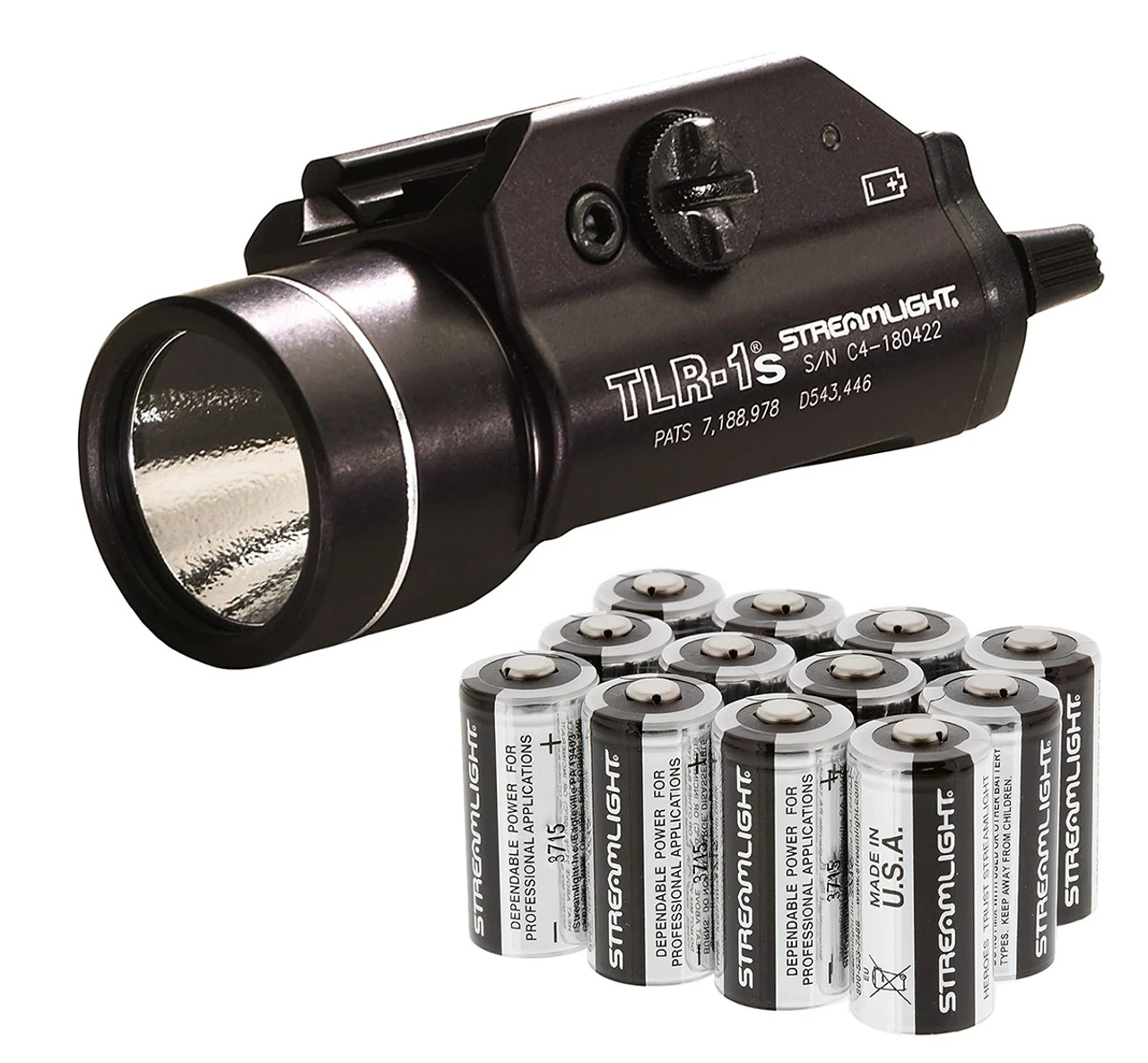 Intensely bright, virtually indestructible, tactical Streamlight TLR-1s LED Rail Mounted With Strobe Flashlight With Batteries 12-Pack (69210-85177-BUNDLE) which attaches to almost any gun in seconds.