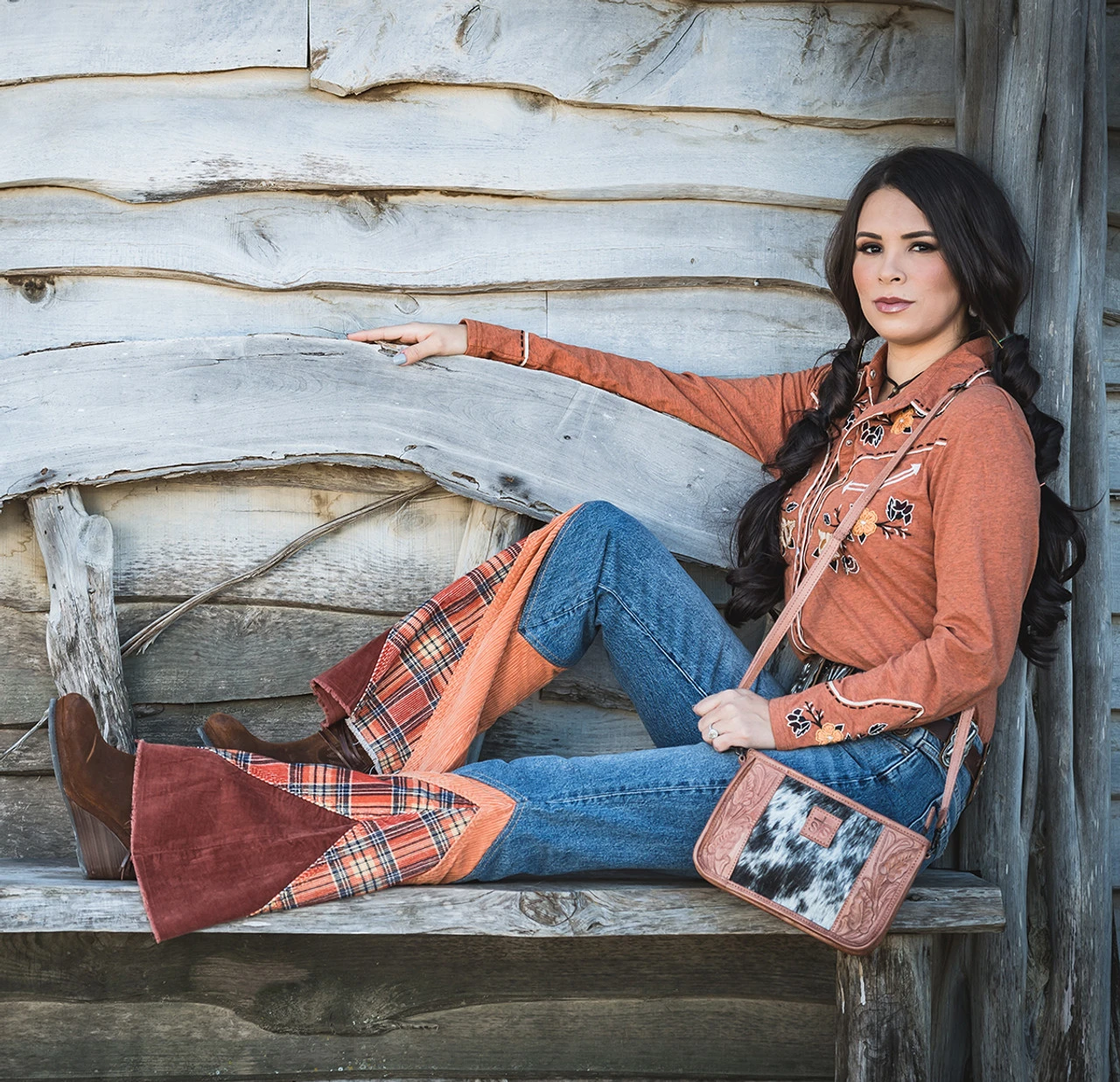Add a touch of western flair to your getup with the Yipee Kiyay Claire Crossbody Bag. This crossbody bag with adjustable leather shoulder strap for comfortable carrying, interior zippered pocket and inspiration quote on the inside lining is fully functional with just enough room to take all of your Western style on the go.