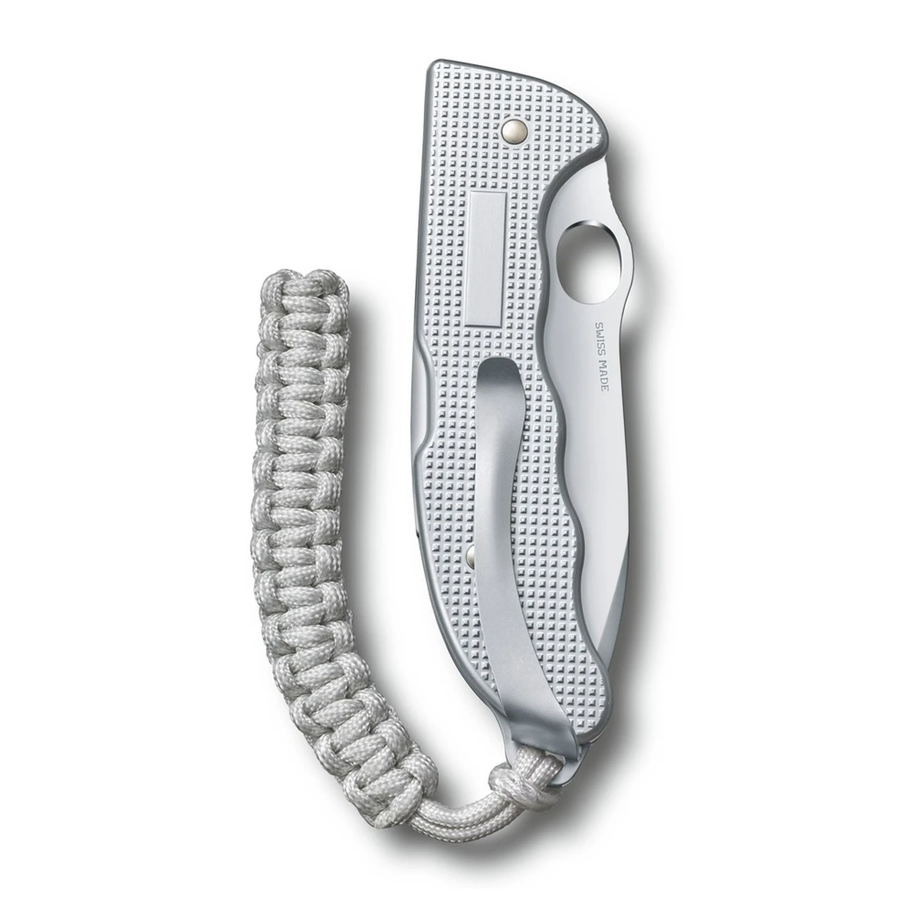 Built for discovery and wanderlust, the incarnation of the Hunter Pro adds sophistication and slick looks into the mix. Featuring the ribbed Alox scales synonymous with Victorinox Pioneer collection, this design adds a more tactile, multi-dimensional finish. The curved clip slots seamlessly onto the layer behind the scale for easy attachment to any garment. And the spring-integrated lanyard hole and woven silver paracord pendant prove it’s refined, yet highly robust.